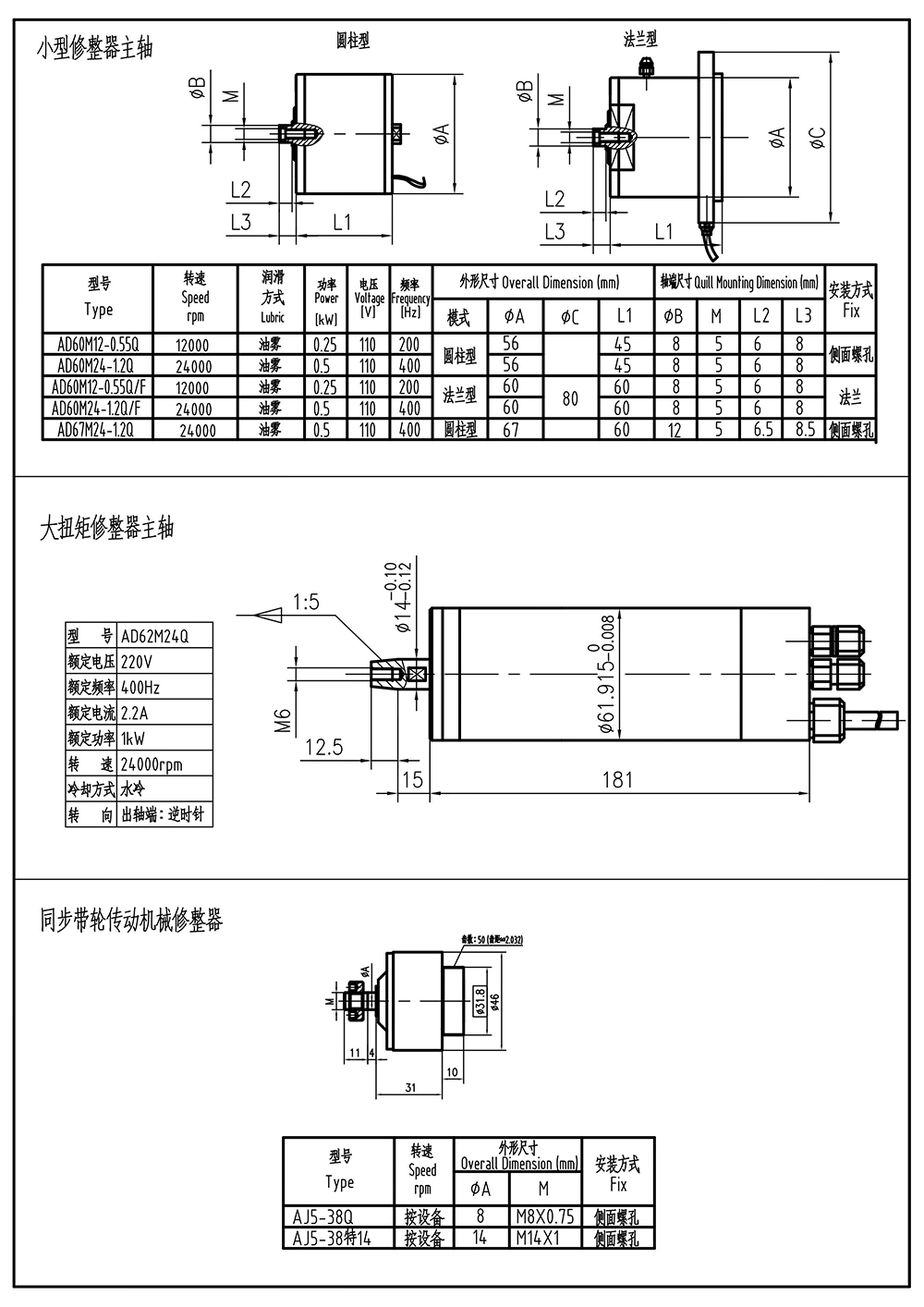 高速高精钻铣电主轴